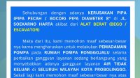 Kena Garuk Bego Pipa 8″ Pecah, Ribuan Pelanggan Perumdam Bayuangga Probolinggo Krisis Air Bersih