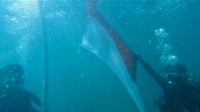Peringati Kemerdekaan Rl, Prajurit Kodaeral VI Kibarkan Bendera Merah Putih di Bawah Laut Pulau Barrang Caddi Dan Posal Pinrang