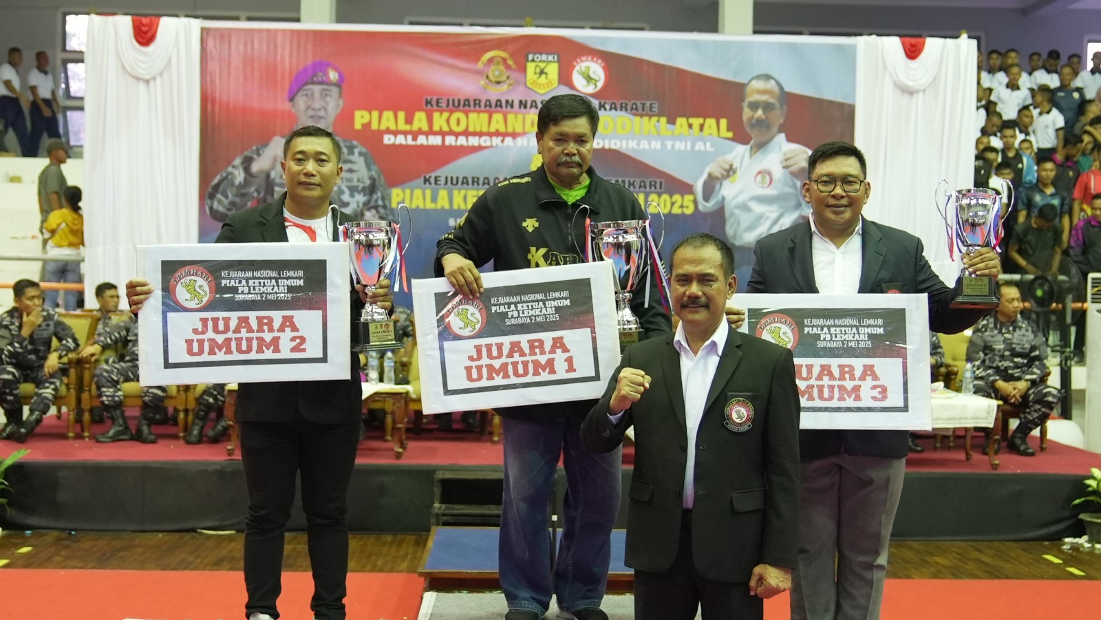 Sedangkan, dalam Kejurnas Karate Piala Dankodiklatal 2025 pada “Kategori Open Antar Pelajar dan Mahasiswa, TNI POLRI” dengan hasil sebagai berikut Juara Umum 1 diraih oleh Marinir dengan perolehan : 14 emas , 11 perak, 11 perunggu. Kemudian, Juara Umum 2 diraih oleh : Dojo Hiu Sakti Kodiklatal dengan perolehan : 8 emas 7 perak 7 perunggu. Sementara itu Juara Umum 3 diraih oleh : Inkanas Jatim Satu dengan perolehan : 6 emas, 7 perak, 9 perunggu.