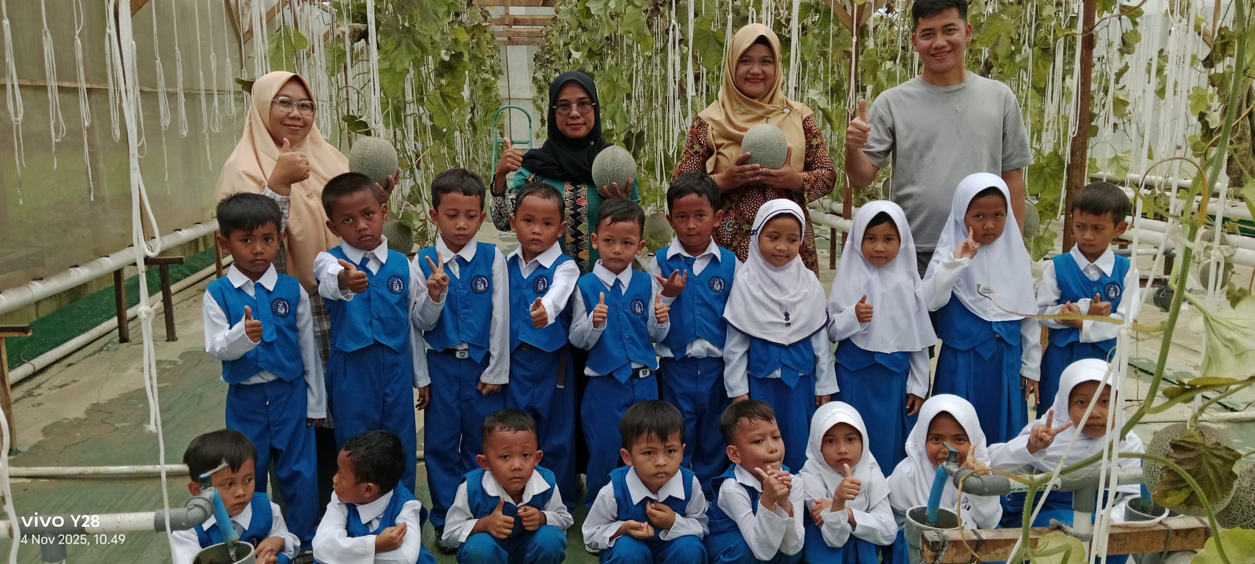 Dengan wajah ceria dan penuh semangat, para siswa tampak antusias mengikuti setiap tahap kegiatan. Sebelum praktik dimulai, para guru memberikan pengarahan dan pengenalan tentang proses menanam melon secara hidroponik — mulai dari penyemaian, penanaman di media air, hingga perawatan tanaman sampai berbuah.