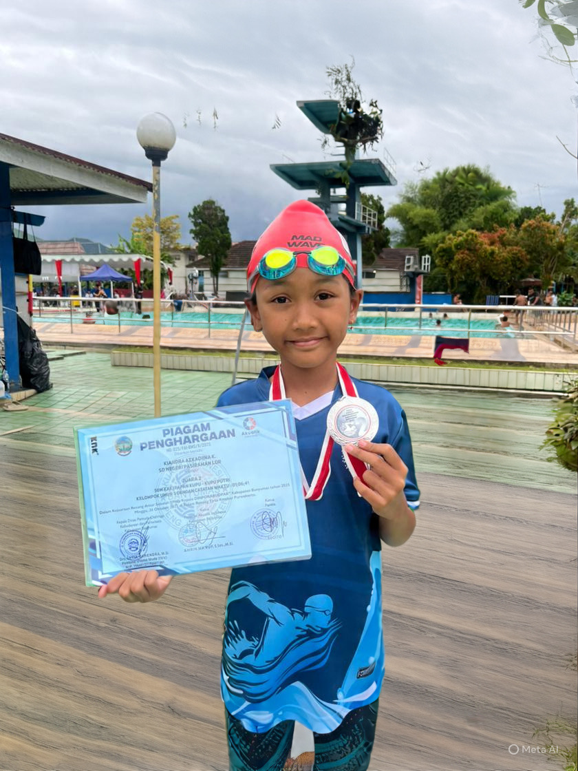 Banyumas – Gelaran Kejuaraan Renang Antar Sekolah se-Kabupaten Banyumas memperebutkan Piala Kepala Dinporabudpar yang dilaksanakan pada Minggu (26/10/2025), menjadi ajang lahirnya bibit-bibit unggul olahraga air di tingkat pelajar. Salah satu siswi berprestasi dari SDN Pasiraman Lor, Korwil Pekuncen, Kiandra Azkadiina K, berhasil menorehkan prestasi membanggakan di tingkat kabupaten.