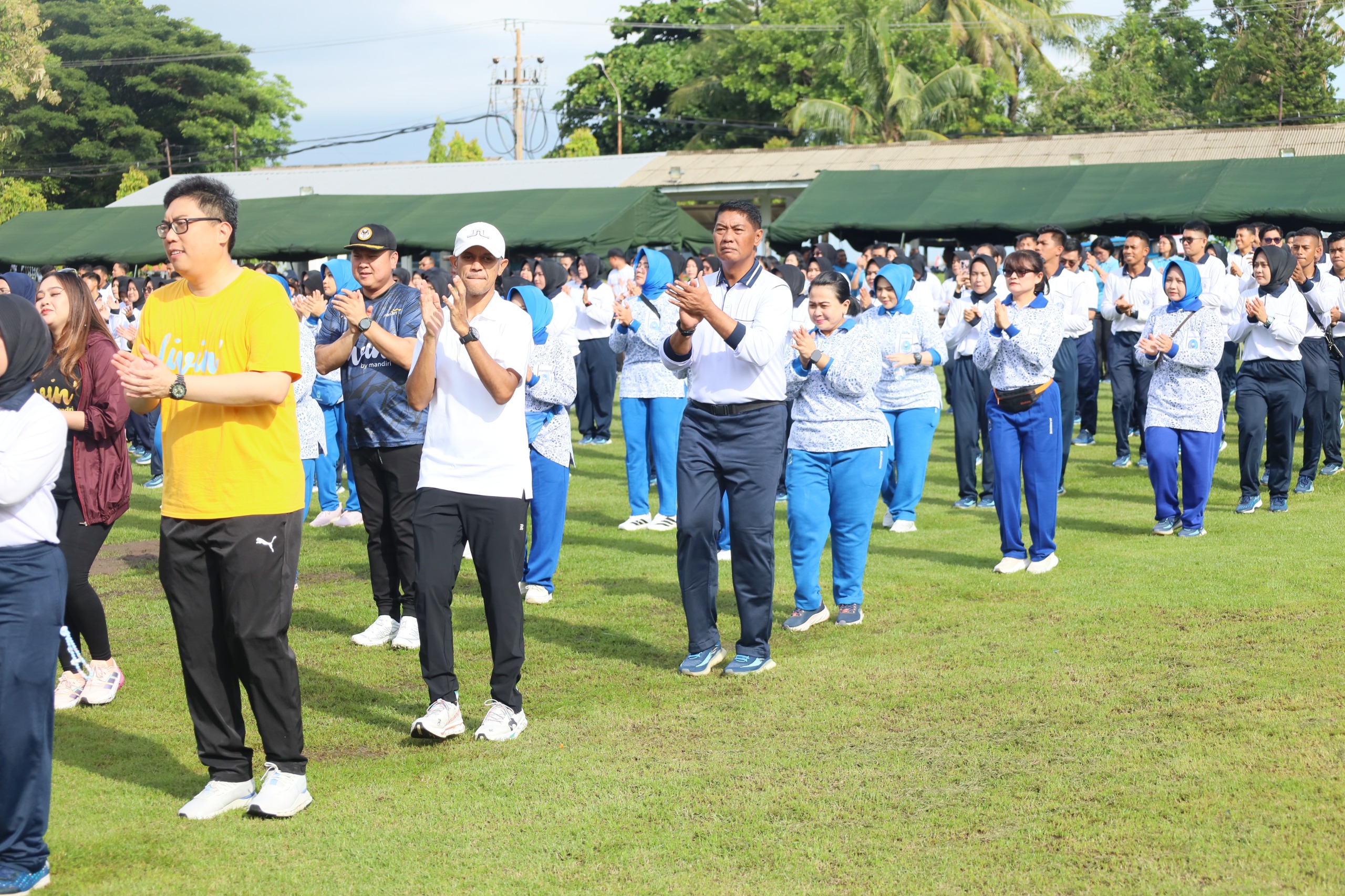 Dengan penuh energi dan kekompakan, seluruh peserta memulai rangkaian olahraga dengan Senam Tamang Pung Kisah dan Senam Tabolak Balik, dua senam khas yang membangkitkan semangat kebugaran prajurit.
