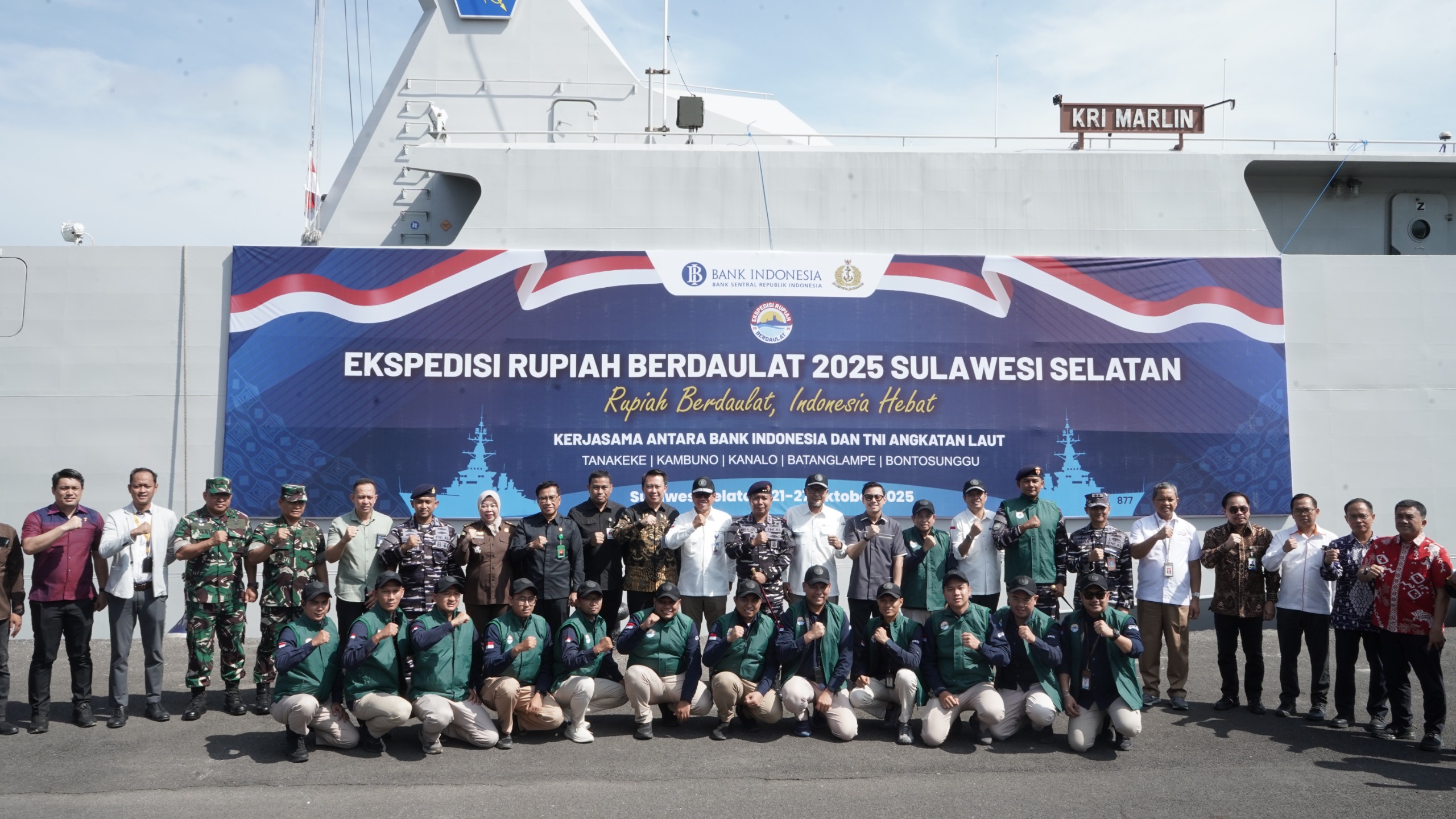 Makassar, Komando Daerah Angkatan Laut VI (Kodaeral VI) bersama Bank Indonesia secara resmi melepas Ekspedisi Rupiah Berdaulat (ERB) 2025 dari Dermaga Layang Kodaeral VI, Selasa (21/10/2025).