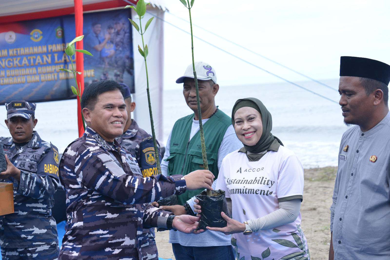 Salah satu momen penting dalam kegiatan ini adalah penyerahan bibit mangrove secara simbolis oleh Kepala Staf TNI Angkatan Laut (Kasal) Laksamana TNI Dr. Muhammad Ali, kepada General Manager Mercure Makassar Nexa Pettarani, Wiwied Nurseka yang turut disaksikan oleh Komandan Lantamal VI (Danlantamal VI) Makassar Brigadir Jenderal TNI (Mar) Dr. Wahyudi, S.E., M.Tr.Hanla., M.M., M.Han.