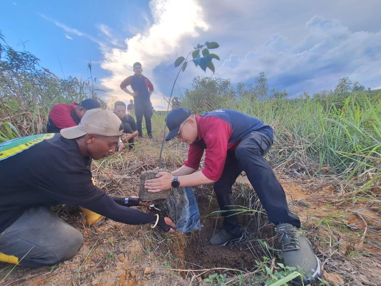 melaksanakan penanaman bibit pohon meranti di kawasan Hutan Taman Buru Rempang serta