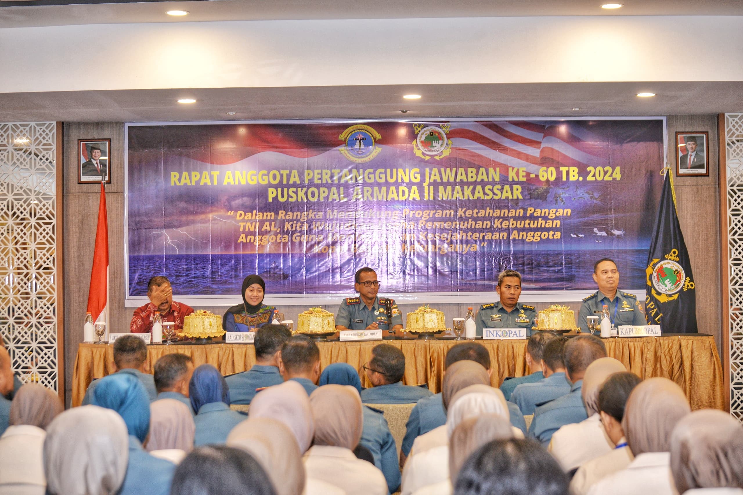 Makassar, Guna membangun pengelolaan Koperasi TNI AL yang profesional dan akuntabel, Pangkalan Utama TNI Angkatan Laut VI (Lantamal VI) Makassar menggelar Rapat Anggota Pertanggungjawaban (RAPJ) Tahun Buku 2024 Puskopal Armada II Makassar. Acara ini berlangsung di Ruangan Puri Agung, Hotel Grand Palace, Makassar, Jumat (25/4/2025).