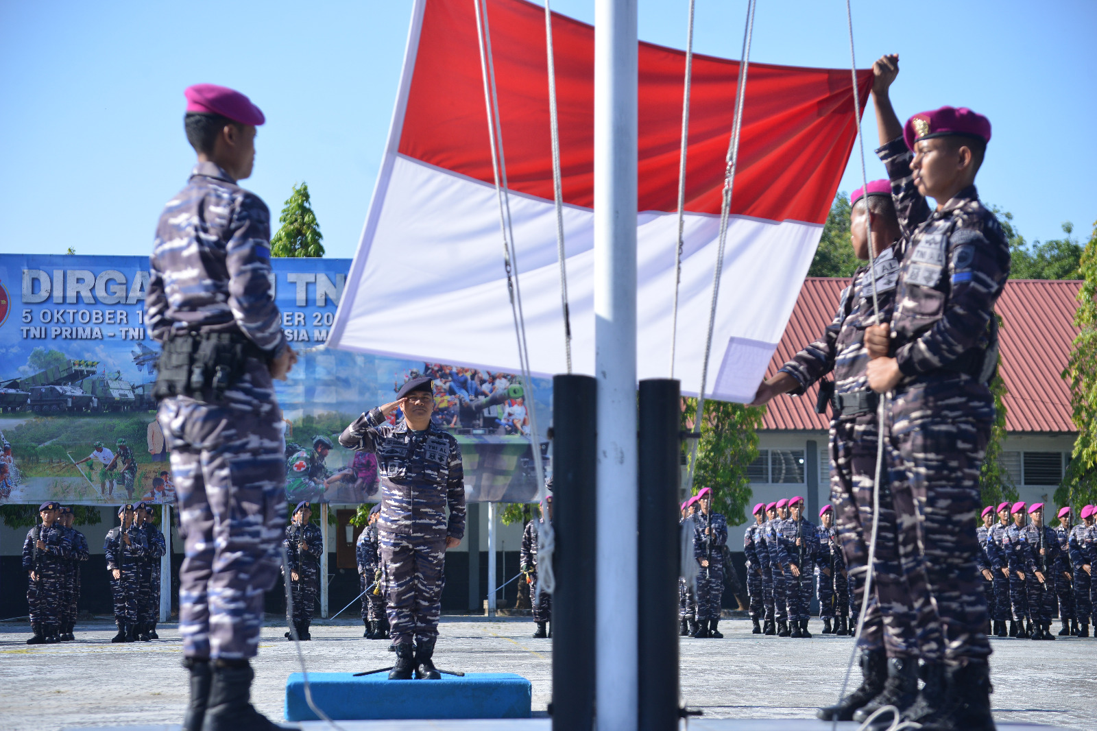 Bertindak selaku Komandan Upacara Lettu Marinir Wiyono,. Upacara yang diikuti seluruh prajurit dan Aparatur Sipil Negara (ASN) Kodaeral VI ini berlangsung khidmat. Seluruh peserta menunjukkan sikap disiplin dan semangat kebangsaan yang tinggi sepanjang pelaksanaan upacara.