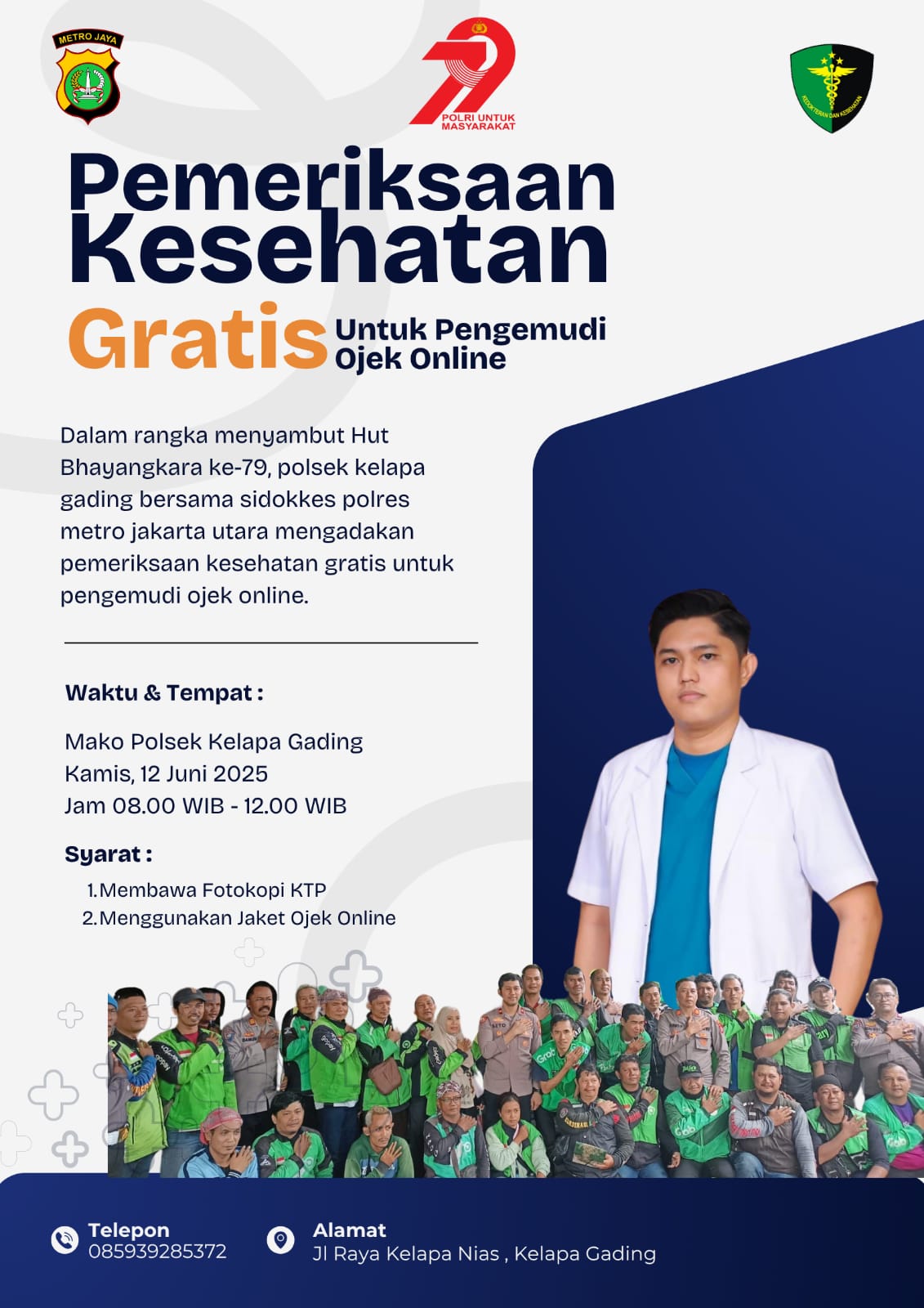 Peduli Kesehatan Ojol, Polsek Kelapa Gading Gelar Pemeriksaan Gratis Jelang HUT Bhayangkara ke-79