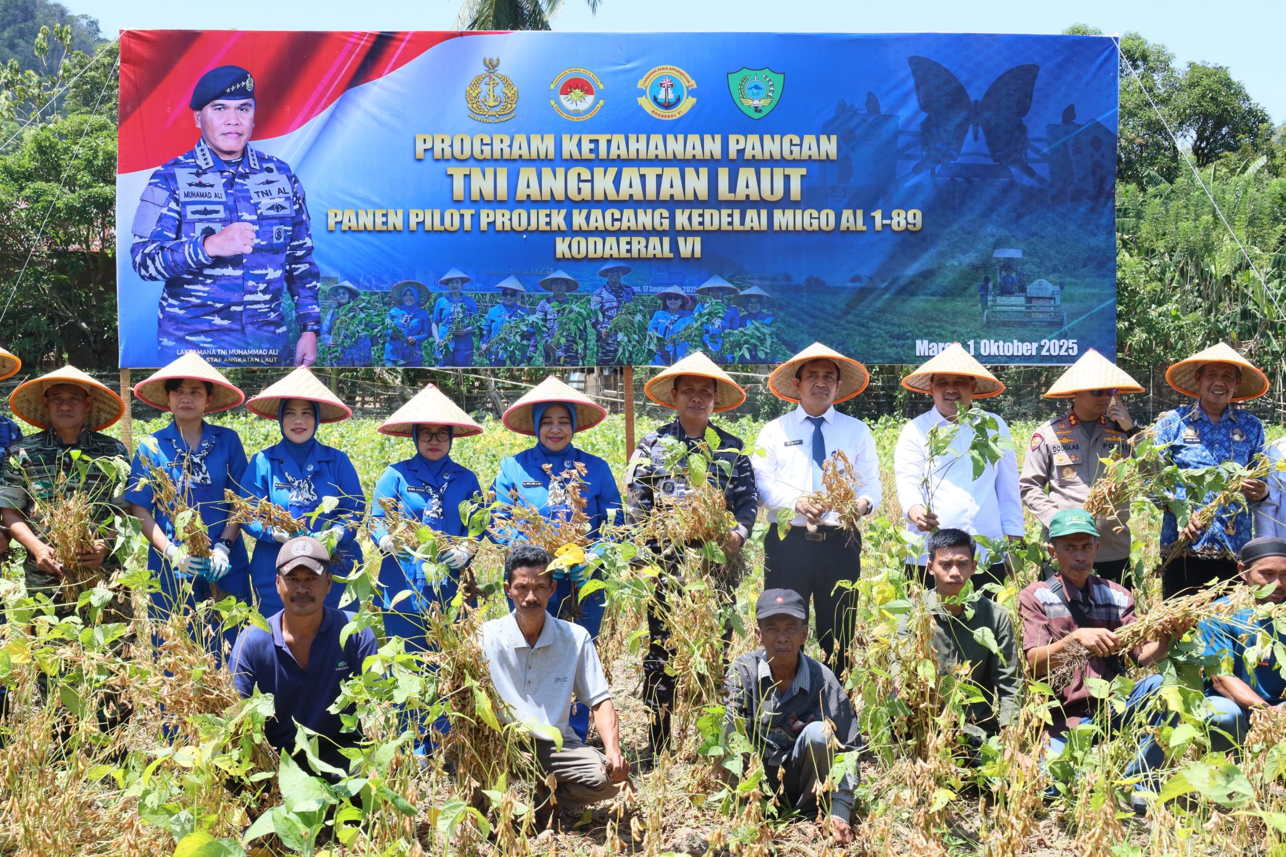 Kegiatan ketahanan pangan TNI AL panen Kacang Kedelai Mugo AL 1-89 Kodaeral VI tersebut digelar dalam rangka memperingati HUT Ke-80 TNI Tahun 2025.