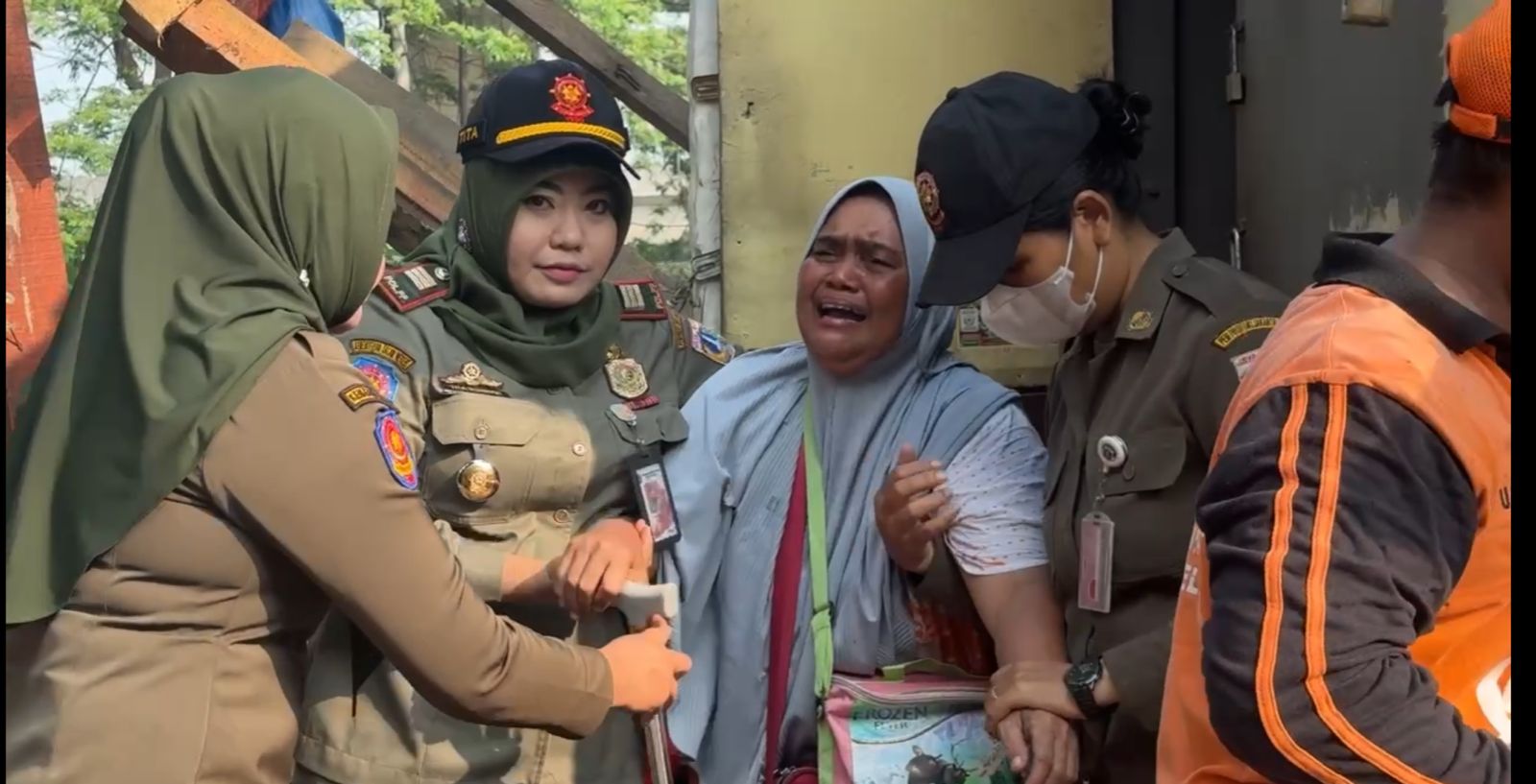 Karena terus menangis, petugas Satpol PP wanita yang turut serta dalam penertiban itu pun menuntun Sitihoni meninggalkan warungnya.