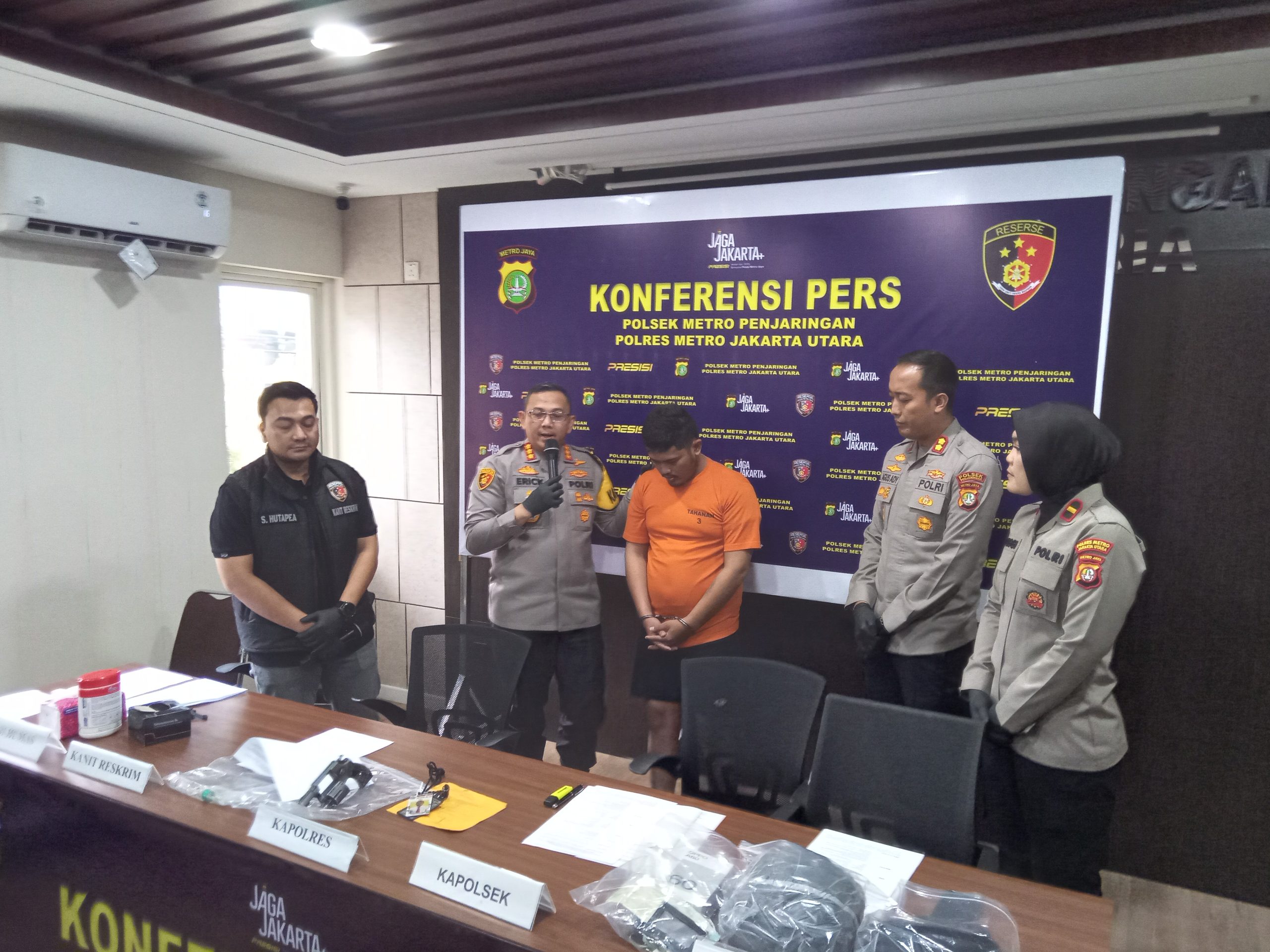 “Pelaku menghentikan kendaraan ojek online, kemudian minta diantarkan ke kolong Kalijodo. Kemudian sampai di TKP, pelaku atau tersangka menyampaikan identitas polisi kemudian meminta handphone dan motor dari korban, kemudian membawa lari kendaraan tersebut,” ujar Erick di Mapolsek Metro Penjaringan, Kamis (13/11/2025).