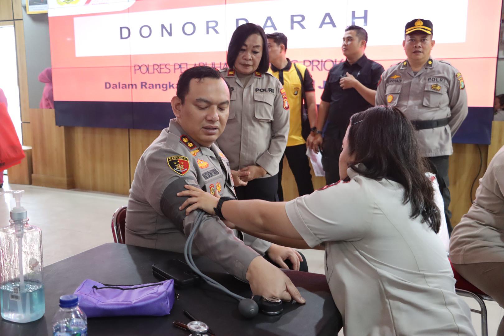 Kapolres Pelabuhan Tanjung Priok, AKBP Dr. Martuasah H. Tobing, S.I.K., M.H., turut hadir, ikut mendonorkan darahnya dan membuka kegiatan secara resmi. Ia didampingi oleh Ketua Bhayangkari Cabang Polres Pelabuhan Tanjung Priok, Ny. Roulien Martuasah Tobing, serta jajaran pejabat utama lainnya seperti Wakapolres KOMPOL Dr. Budi Santoso, S.H., S.I.K., M.H., Kabag SDM KOMPOL Supriyadi, S.H., M.H., dan Kasipropam IPTU Stephanus Sukoco, S.H.