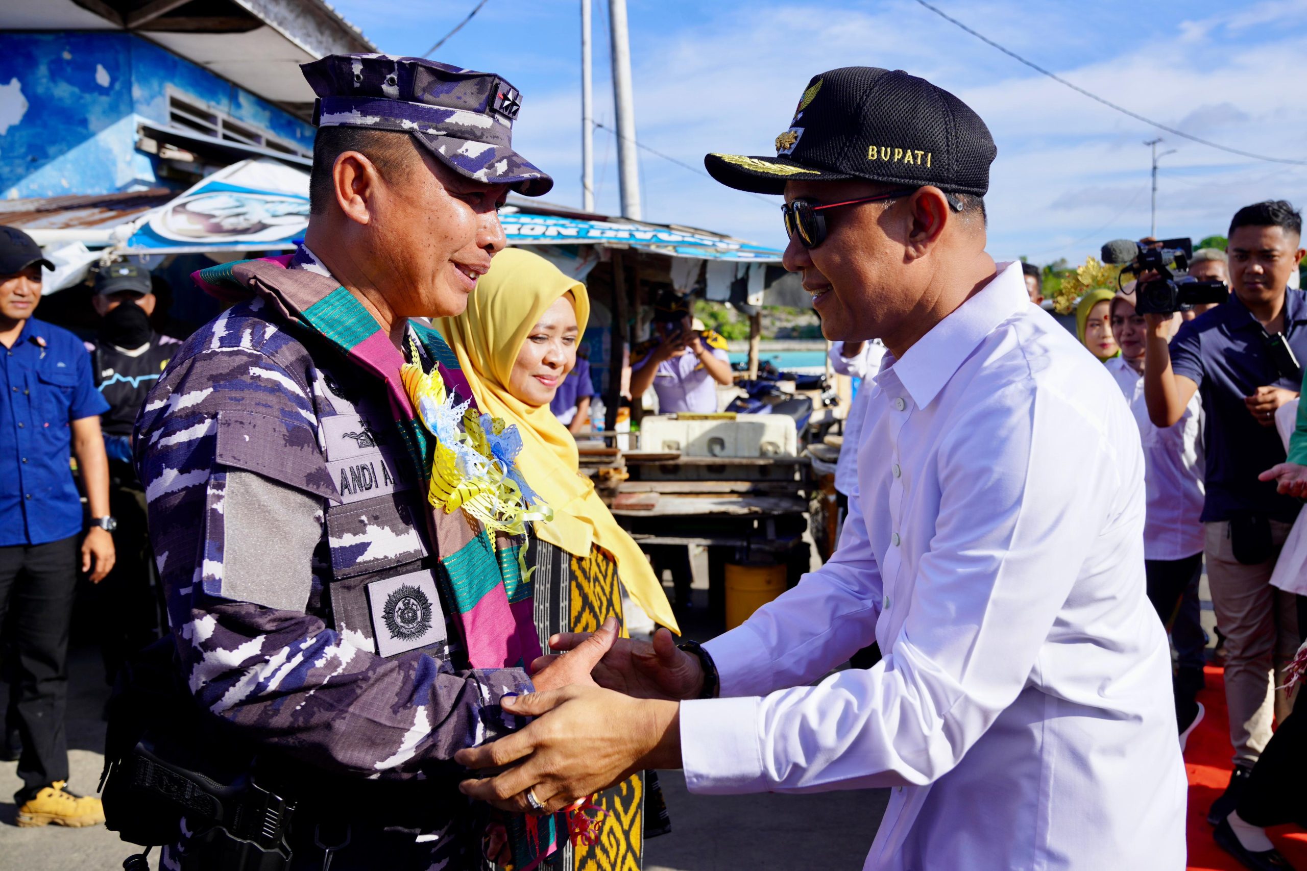 Kabupaten Selayar, Suasana penuh kebanggaan mewarnai penyambutan Komandan Komando Daerah Angkatan Laut (Kodaeral) VI, Laksamana Muda TNI Andi Abdul Azis, S.H., M.M., saat kembali menginjakkan kaki di tanah kelahirannya, Kabupaten Kepulauan Selayar, Rabu (24/9).