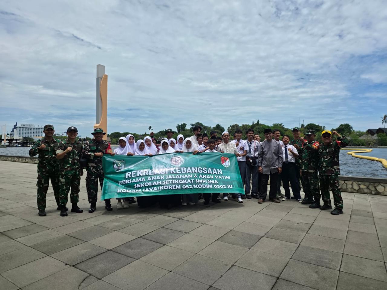 Jakarta – Puluhan anak yatim dan anak jalanan setingkat SMP dan SMA belajar nilai kebangsaan bersama Kodim 0502 Jakrta Utara sambil Rekreasi di Taman Impian Jaya Ancol, Pademangan, Jakarta Utara, pada Sabtu dan Minggu, 25-26 Oktober 2025.