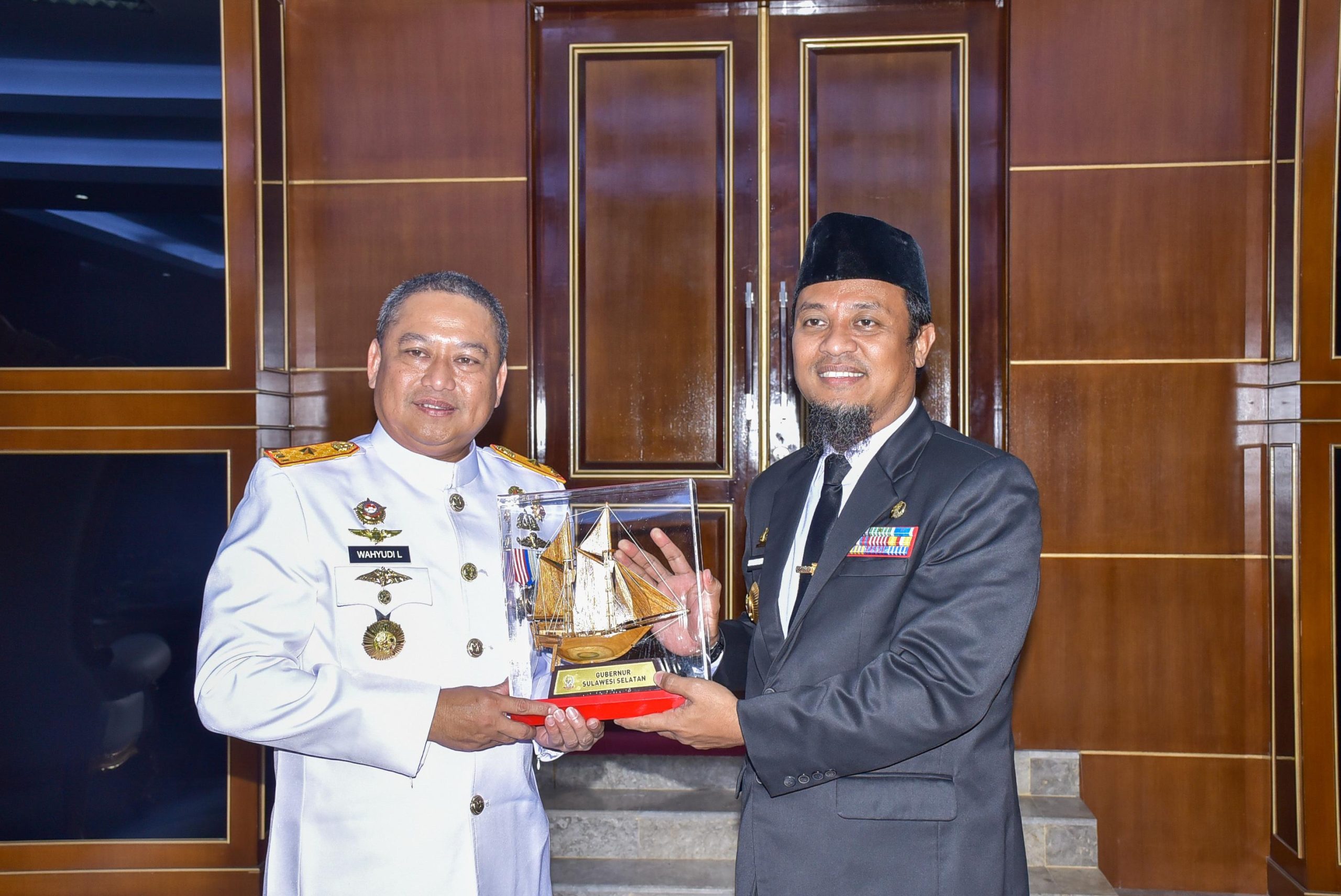 Makassar, Transformasi satuan dari Lantamal VI menjadi Komando Daerah TNI Angkatan Laut VI (Kodaeral VI), Komandan Pangkalan Utama TNI AL VI (Danlantamal VI) Makassar Brigadir Jenderal (Brigjen) TNI Marinir Dr. Wahyudi, S.E., M.Tr.Hanla.,M.M., M.Han., Pamit Ke Gubernur Sul-Sel, Andi Sudirman Sulaiman . Bertempat di Kantor Gubernur Sulsel, Selasa (12/08/2025).