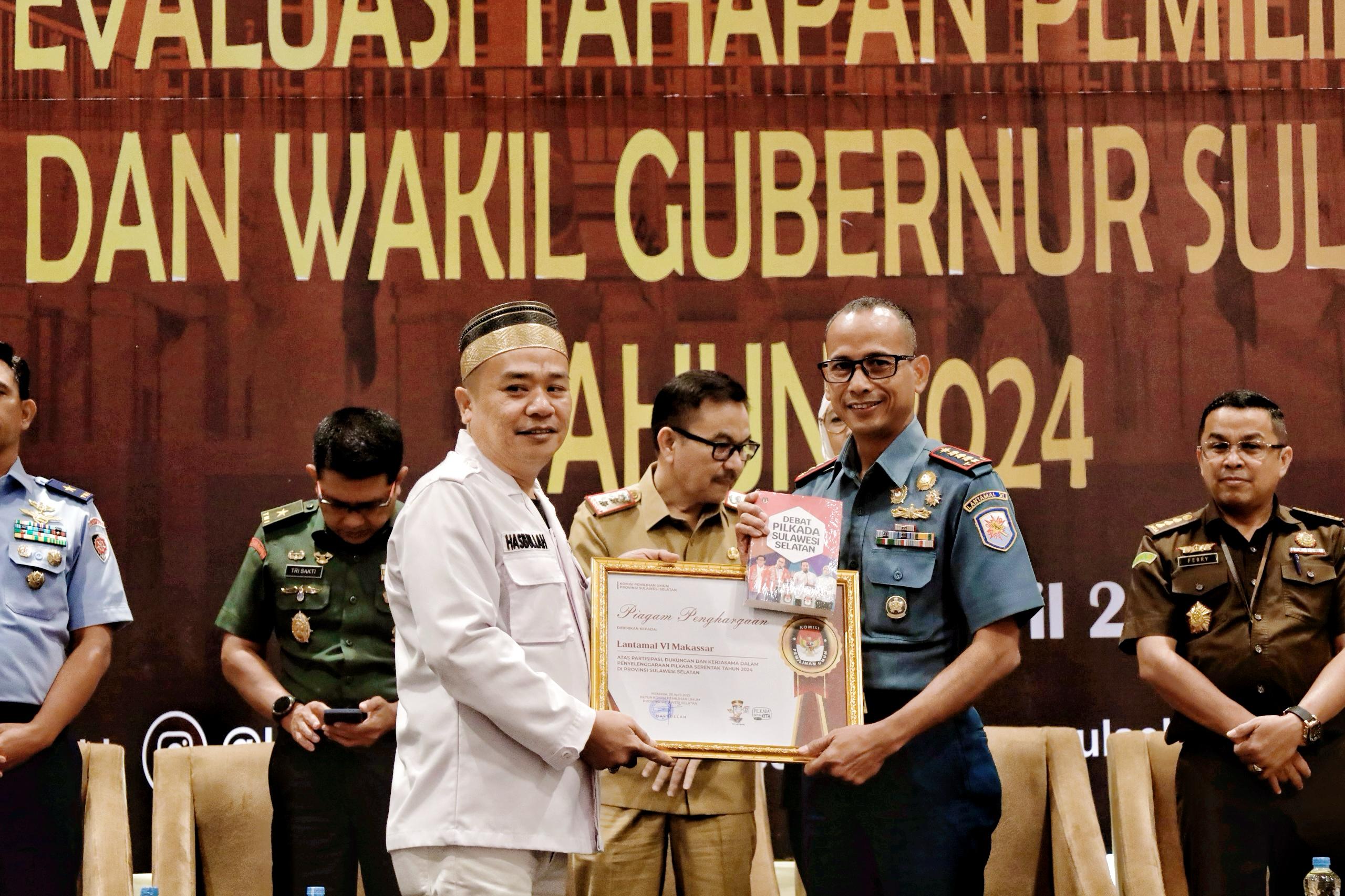 Wadan Lantamal VI dalam hal ini mewakili Komandan Lantamal VI mengatakan “saya turut berbahagia atas kesuksesan penyelenggaraan pemilu tersebut dan saya ucapkan terimakasih atas kepercayaan pemerintah Provinsi Sulsel yang telah memberikan penghargaan kepada TNI AL khususnya Lantamal VI dalam membantu pemerintah mewujudkan pemilu yang damai dan lancar” Ujar Wadan Lantamal VI.