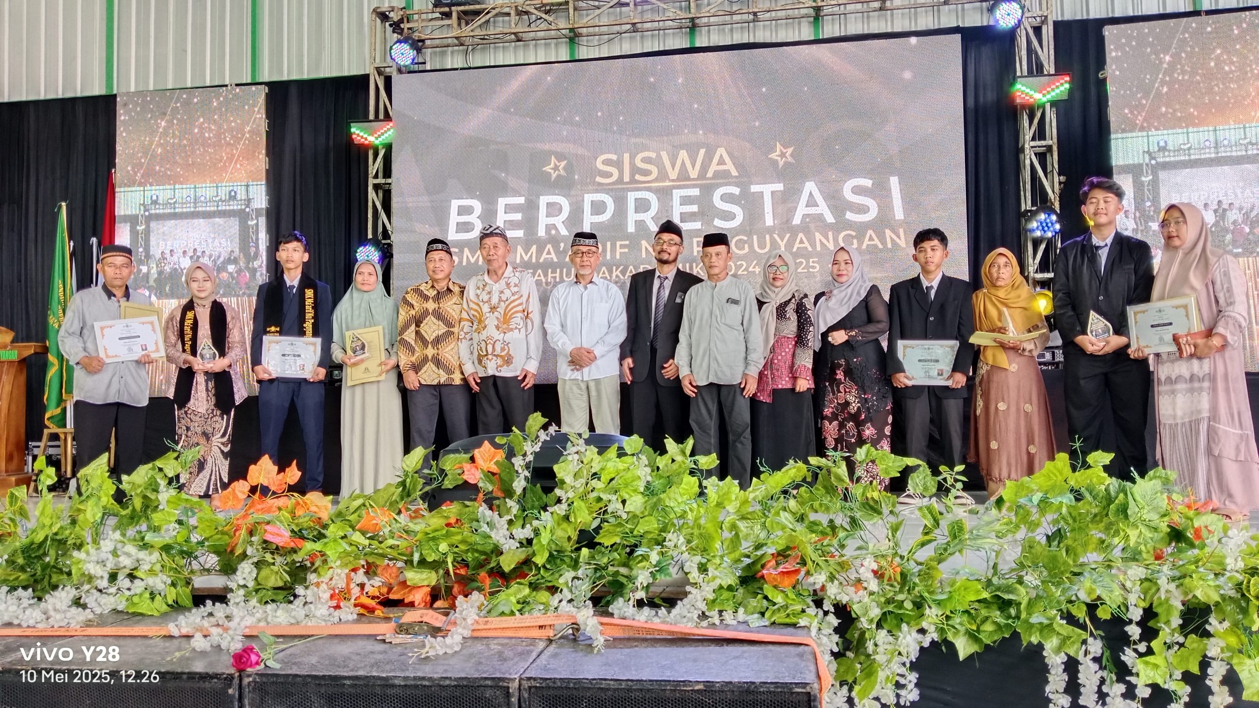 Brebes – Wisuda dan Pelepasan siswa Kelas XII SMK Maarif NU Paguyangan Kabupaten Brebes, Jawa Tengah ke 30 Tahun 2025 digelar di GOR Sekolah Setempat pada Sabtu (10/05/2025).